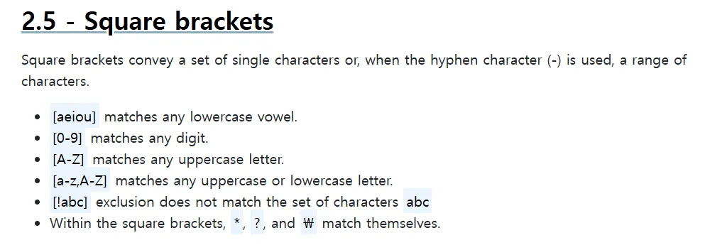as a result, i saw chatgpt mention “globs vs regex” and began looking it up. a glob lets the shell match filenames using wildcard patterns. among these, we can use square brackets to define character classes or ranges in the pattern