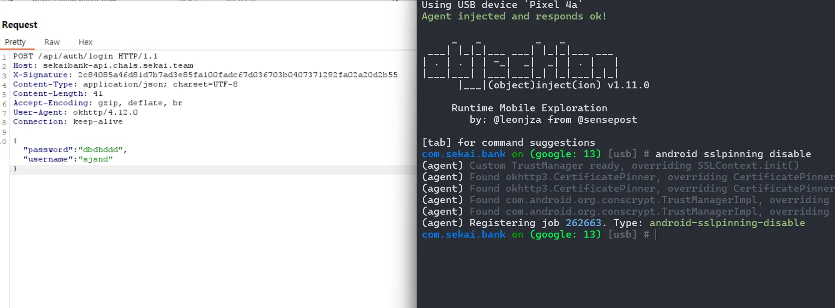 before solving this challenge, we have to bypass SSL Pinning, i have bypass via objection